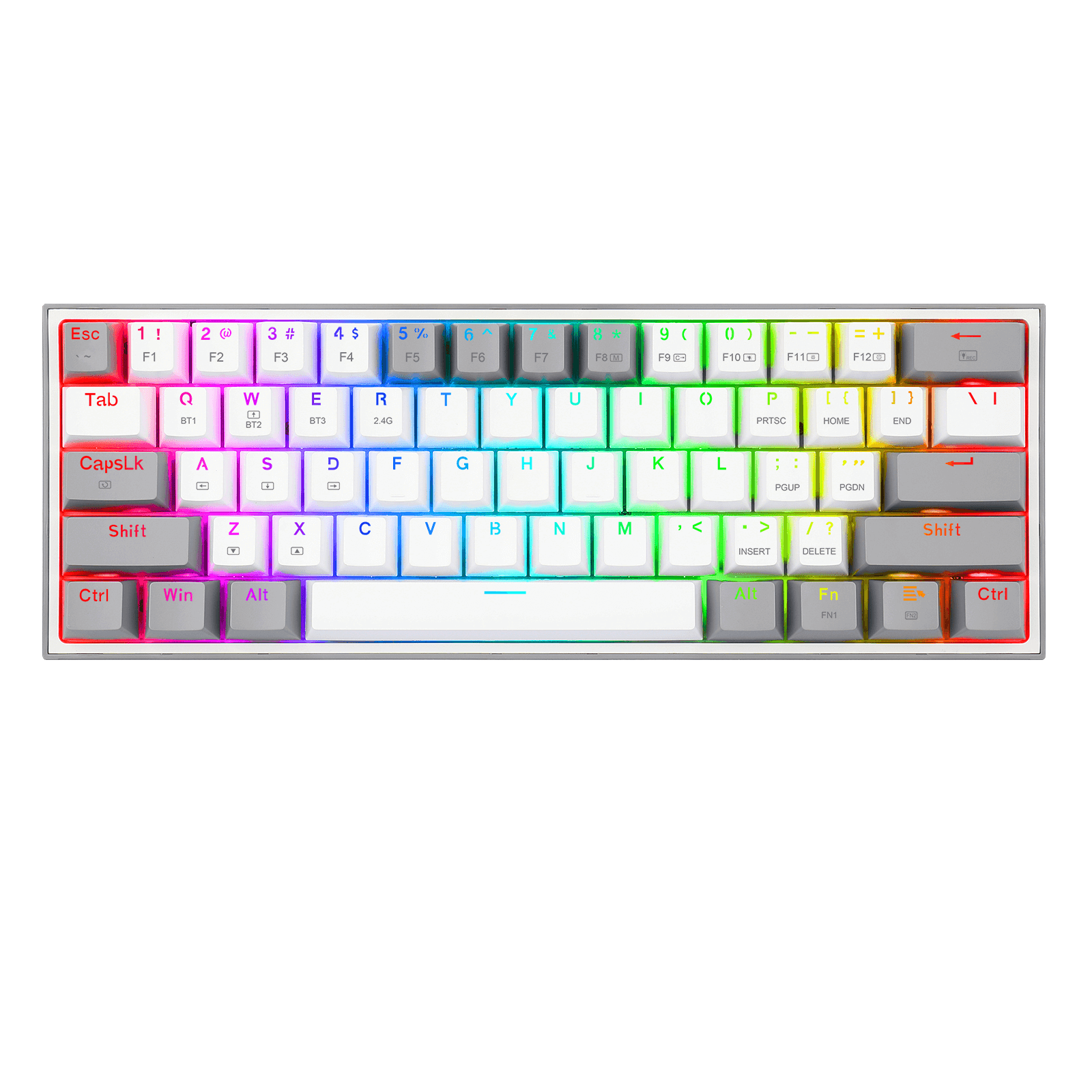 Teclado mecánico 60% diseñado para ofrecer máximo rendimiento en un formato compacto. Gracias a su conectividad triple, switches mecánicos Redragon y retroiluminación RGB Chroma, es ideal para gamers que buscan portabilidad, velocidad y personalización en su setup.